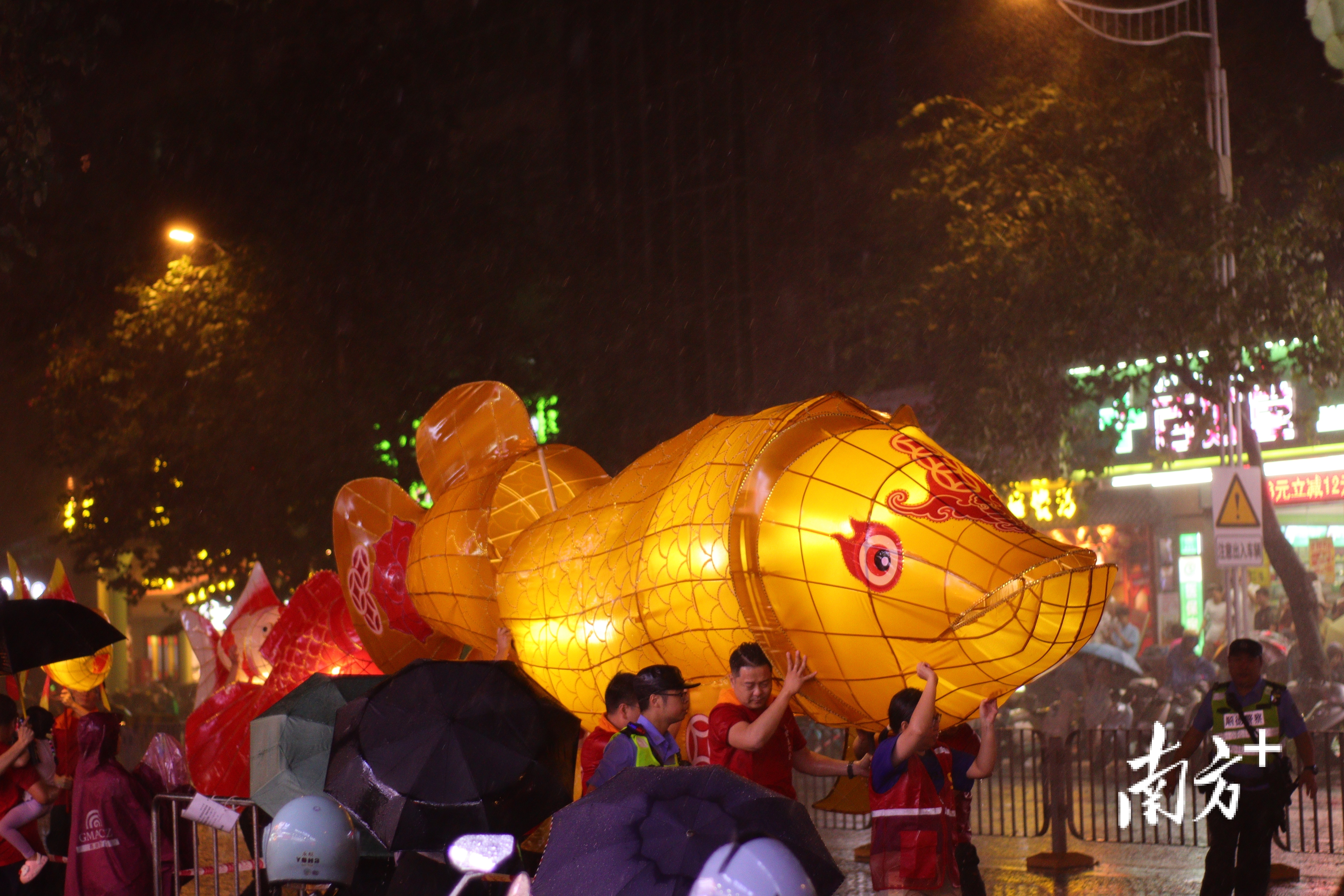 10月7日,农历八月十六,当晚,2025大良鱼灯会的重头戏——民俗巡游拉开帷幕。超200多人组成的民俗巡游队伍,从康帅府出发一路向前。大良鱼灯、南朗鱼灯、八音锣鼓柜、众涌春色、醒狮、麒麟、提灯、彩旗、鱼灯舞、鱼灯货郎和手推车等多个巡游方阵,为沿途市民、游客奉上了视觉与美学的享受。