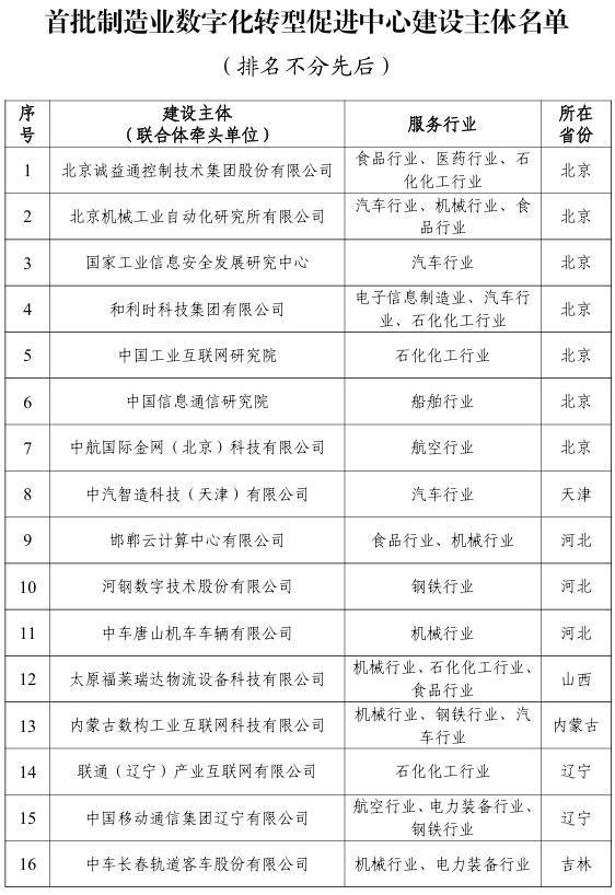 【大河财立方消息】9月28日汇发网,工业和信息化部办公厅公布首批制造业数字化转型促进中心建设主体名单。