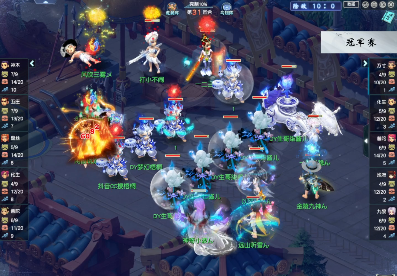 比赛前期,双方均以清宠、加状态为主。不过,苏堤春晓发现自己拥有速度优势后,果断开启点杀模式。比赛第9回合,苏堤春晓靠着九黎城的伤害成功压倒钓鱼岛咒师普陀,令其输出能力大打折扣。